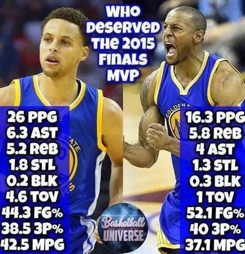 就连对手詹姆斯在接受采访时,都认为库里是2015年勇士总决赛拿到冠军的关键,也是默认应该把FMVP颁发给他才对。